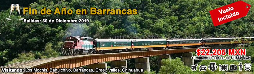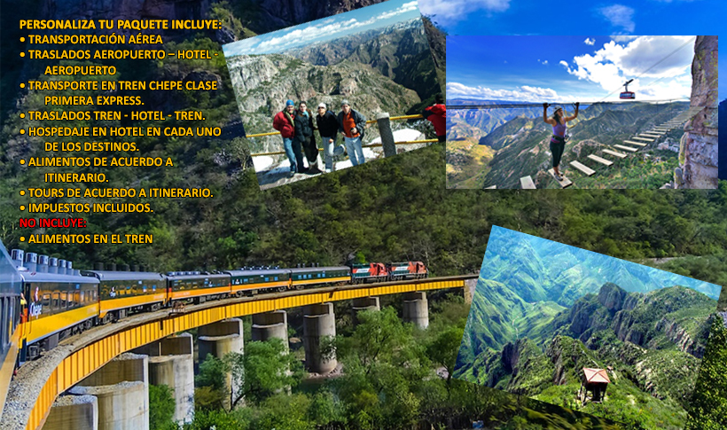 1 noche de alojamiento en Los Mochis, 1 noche en Bahuichivo con 3 alimentos, 1 noche en Barrancas con 3 alimentos, 1 noche en Creel con desayuno, 1 noche de alojamiento en Chihuahua con desayuno.